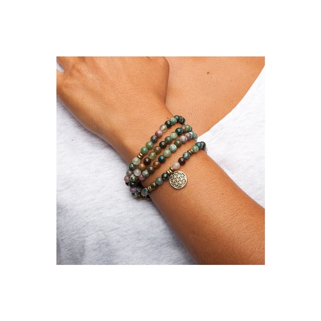 Brățară Mala Bodhi mare – Agat Indian cu simbolul Florii Vieții