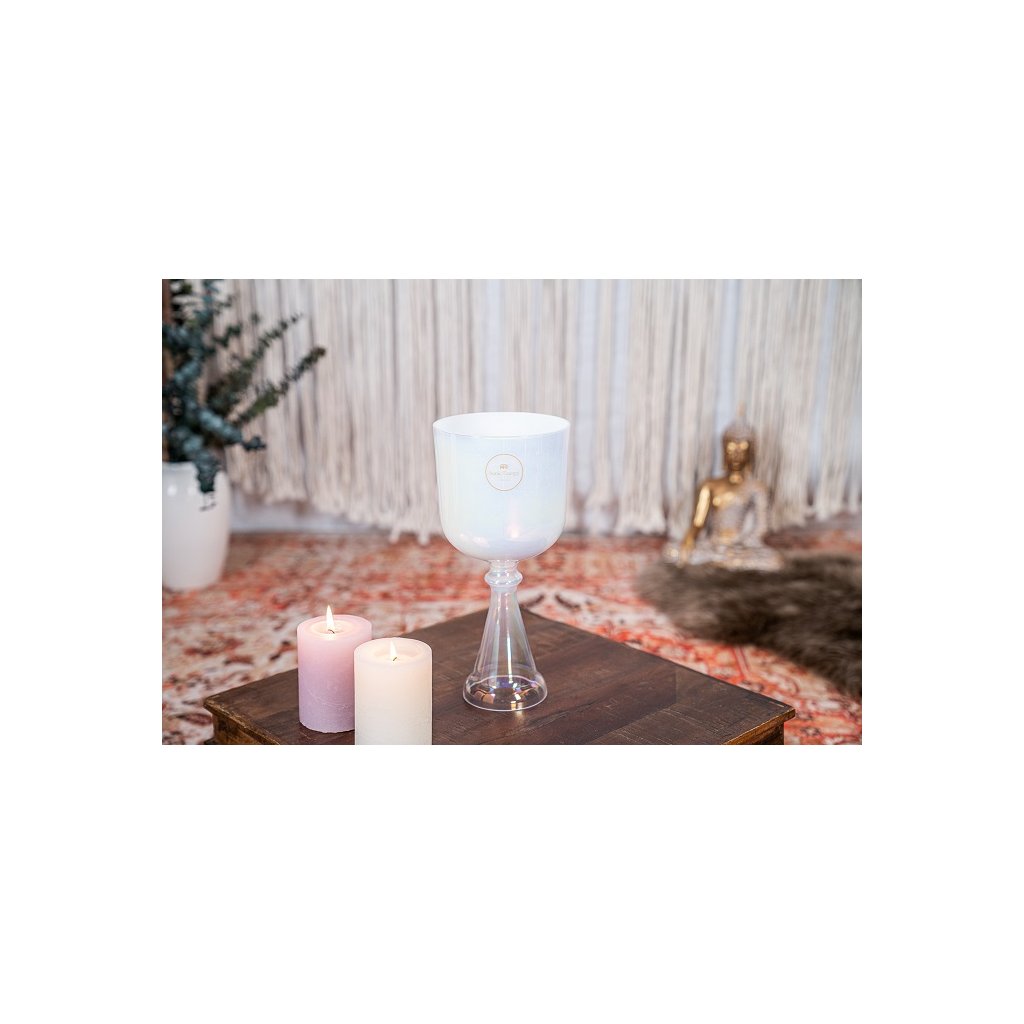 Simțiți energia bolului cântător de cristal. Un ton sferic, de lungă durată, este răspândit prin atingerea sau frecarea ușoară a bolului cântător, făcând ca energia să se simtă în tot împrejurimile sale. Aceste instrumente sunt ușoare și ușor de ținut în mână. Datorită formei lor elaborate manual și acordării specifice, bolurile pot varia ușor în înălțime pentru a fi acordate perfect. Mânerul lung din caliciu vă permite să cântați în aer pentru un confort sporit și o rezonanță suplimentară.