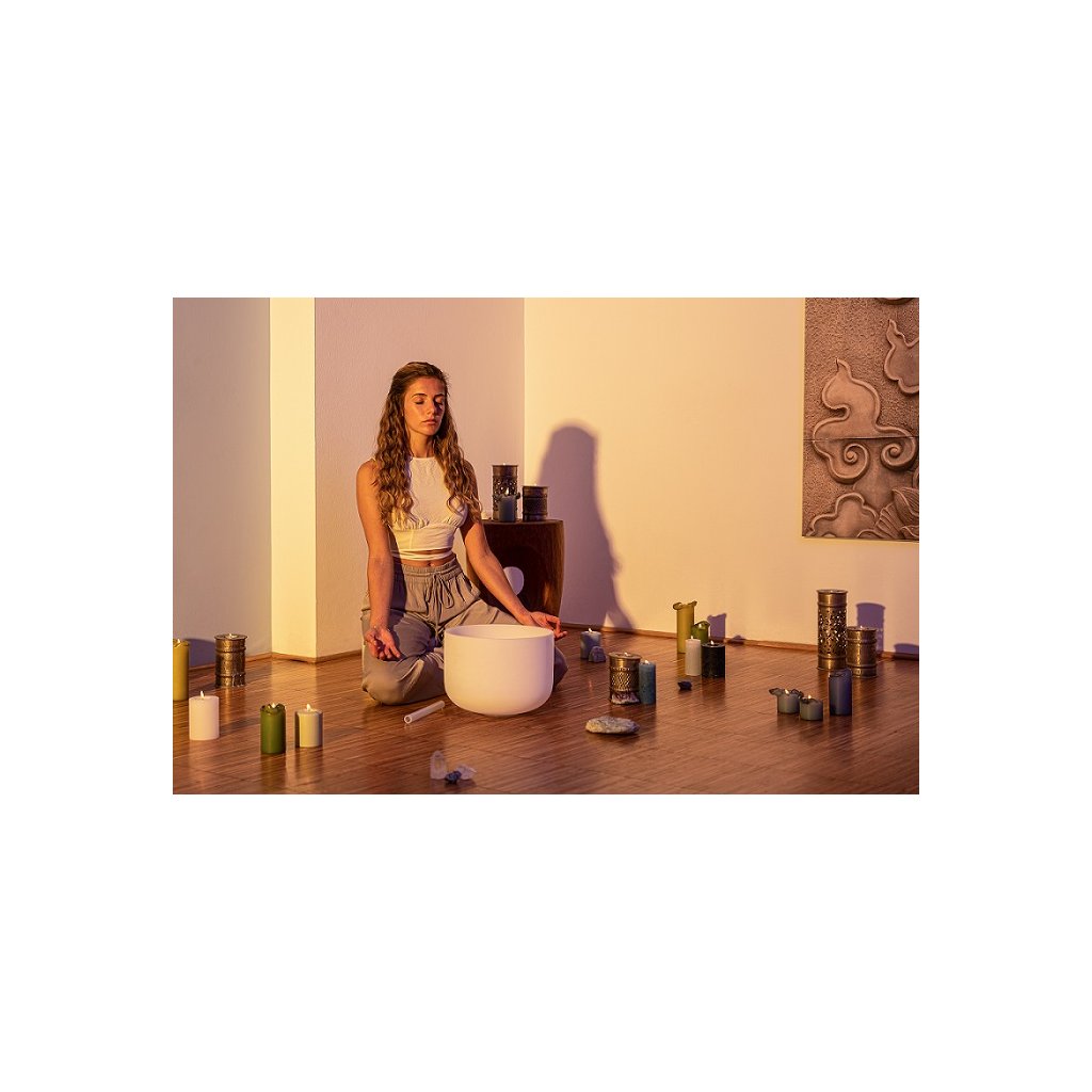 Bolul cântător MEINL Sonic Energy Crystal este fabricat din cuarț de înaltă puritate, cu un finisaj mat care oferă o rezonanță excepțional de lungă durată. Bolurile cântătoare din cristal creează o aură plăcută prin sunetul și designul lor. Ideal pentru terapie de relaxare, vindecarea chakrelor, meditație, fizioterapie, terapie prin sunet, yoga, ajustarea stării emoționale sau chiar pentru decorarea camerei.
