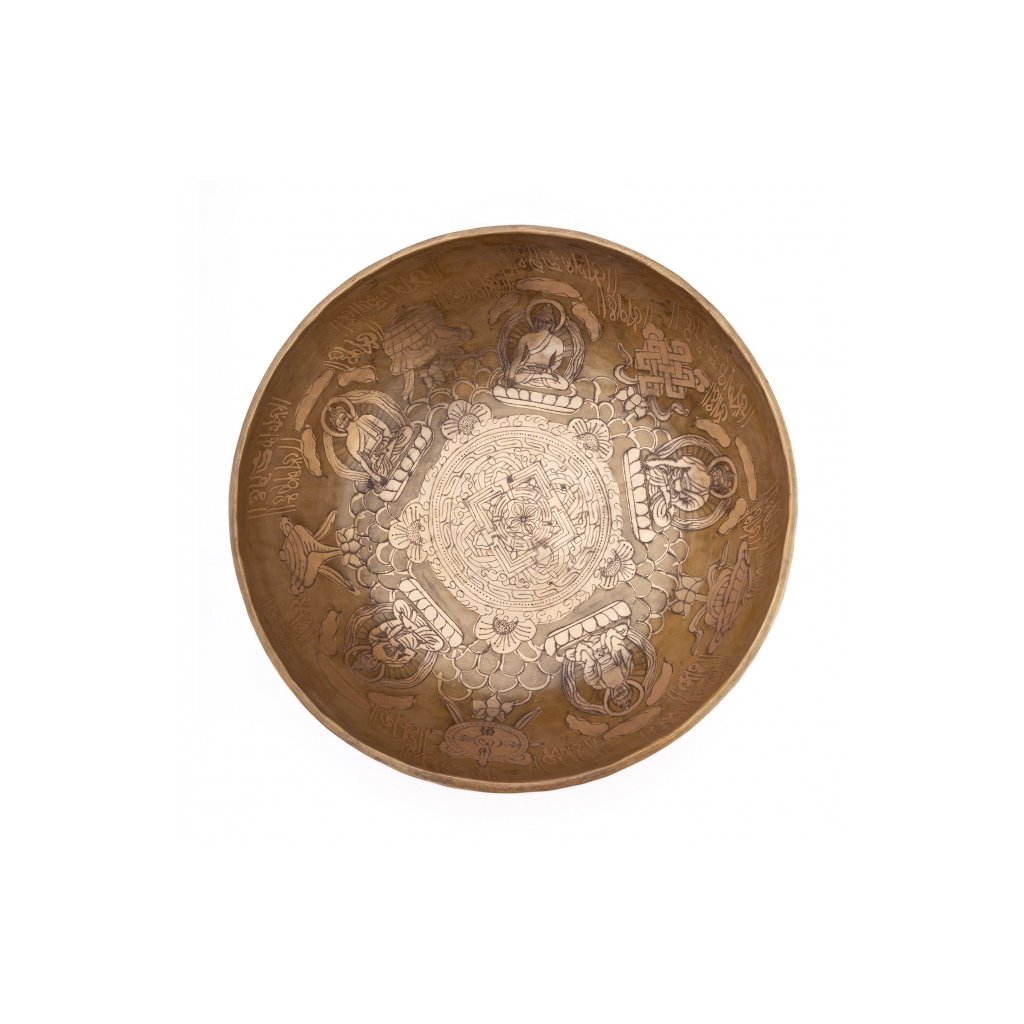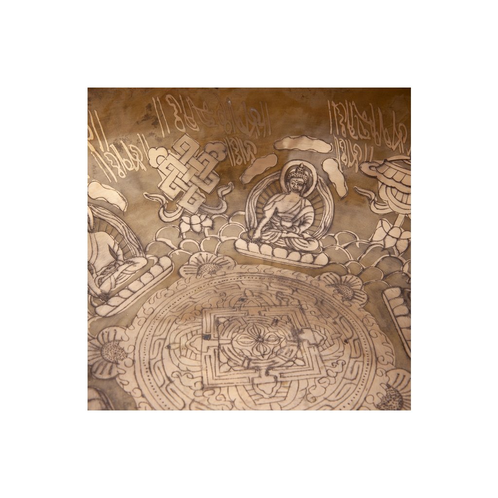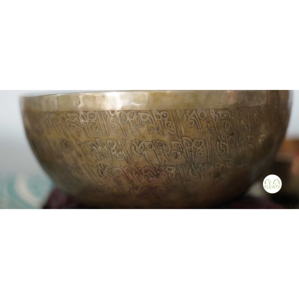 Bol cântător tibetan Bodhi 28 cm - 5 Buddha lucrați manual, tonul Re#