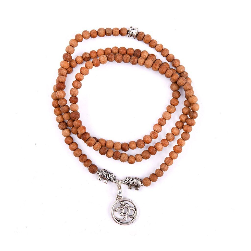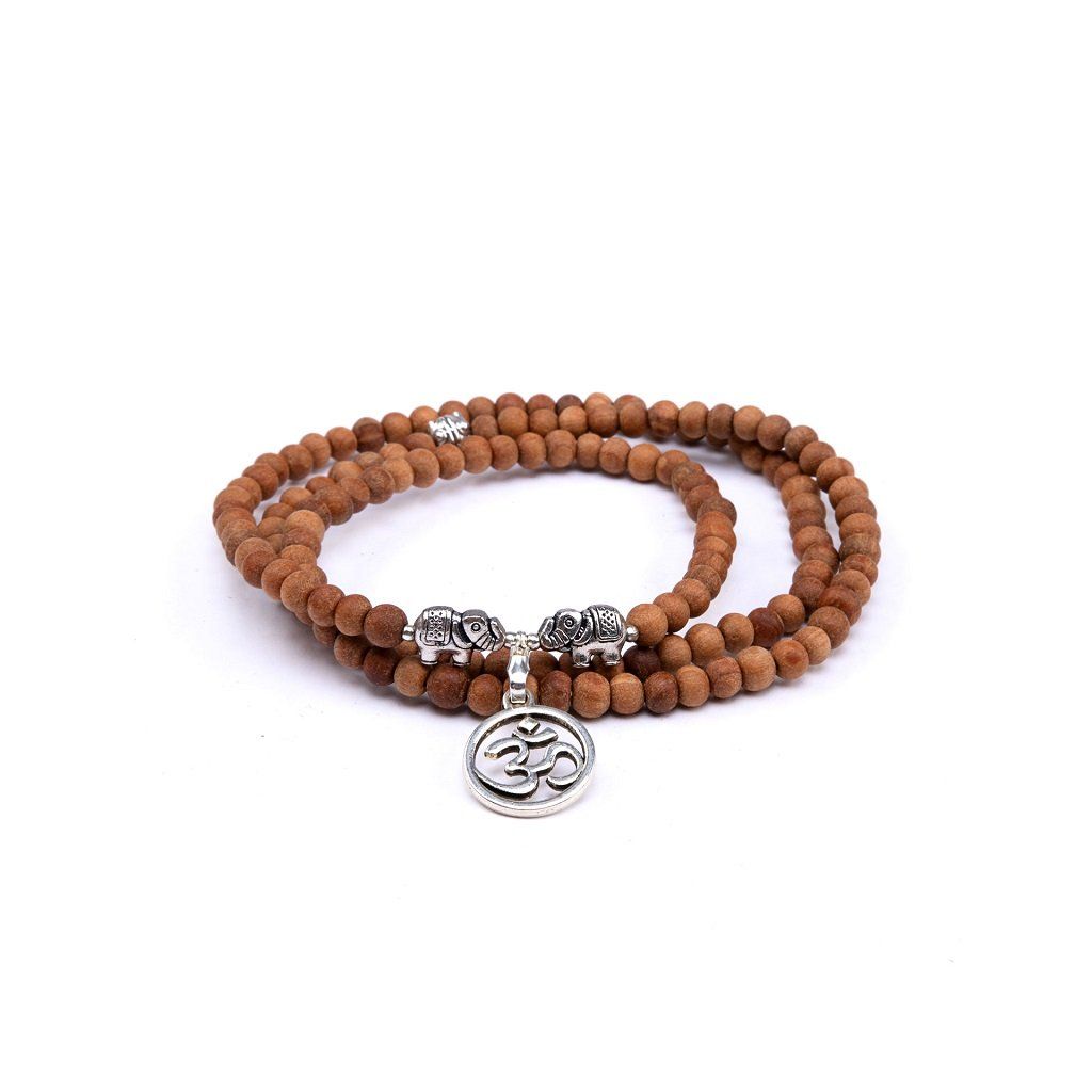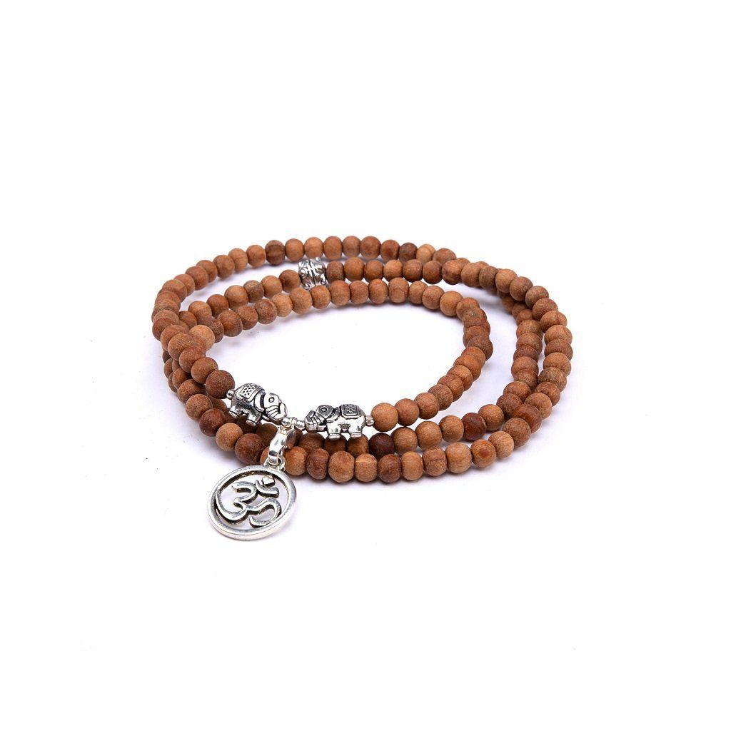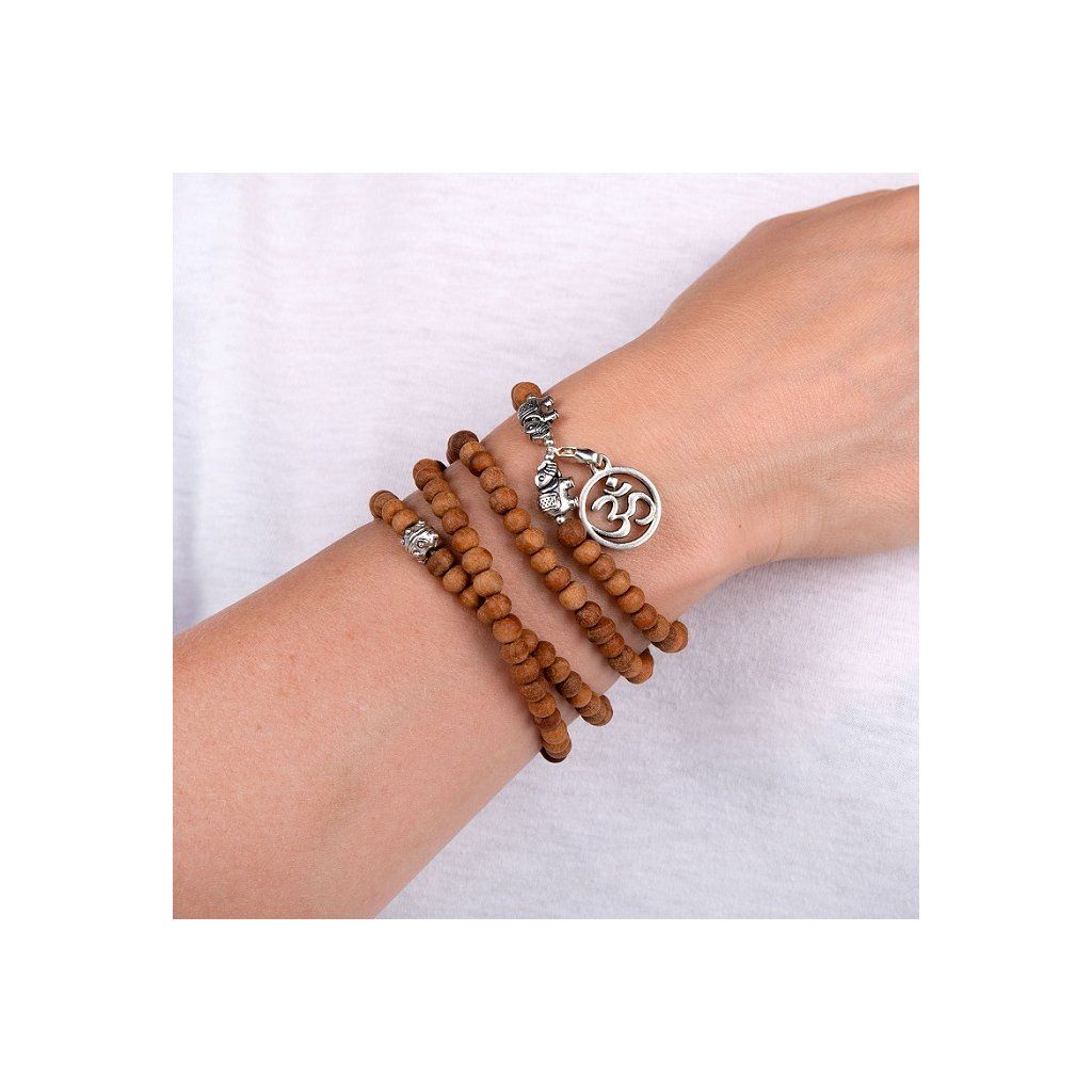 Bodhiextralarge bracelet with a sandalwood scent that you will love. brățara este decorată cu simbolul OM și elefanți și poate fi înfășurată în jurulîncheieturii de până la trei ori.O puteți purta și ca un colier. Mărgelele sunt mai mici, de aprox. 6 mm.
