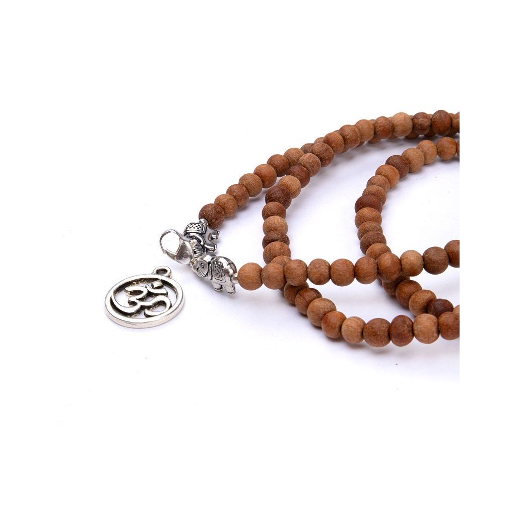 Bodhiextra large bracelet with a sandalwood scent that you will love.Brățara este decorată cu simbolul OM și elefanți și poate fi înfășurată în jurulîncheieturii de până la trei ori.Poate fi purtată și ca un colier. Mărgelele sunt mai mici, de aprox. 6 mm.