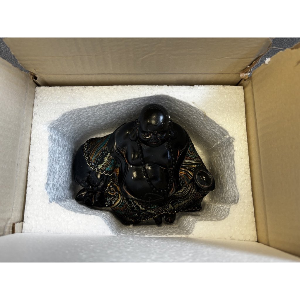 Unul dintre cele mai populare simboluri ale fericirii și bogăției este Buddha râzător chinezesc în poziție așezat , înconjurat de un sac de bogăție. Statuia are 20 cm înălțime și este îmbrăcată decorativ din poliester.