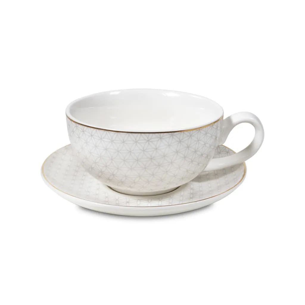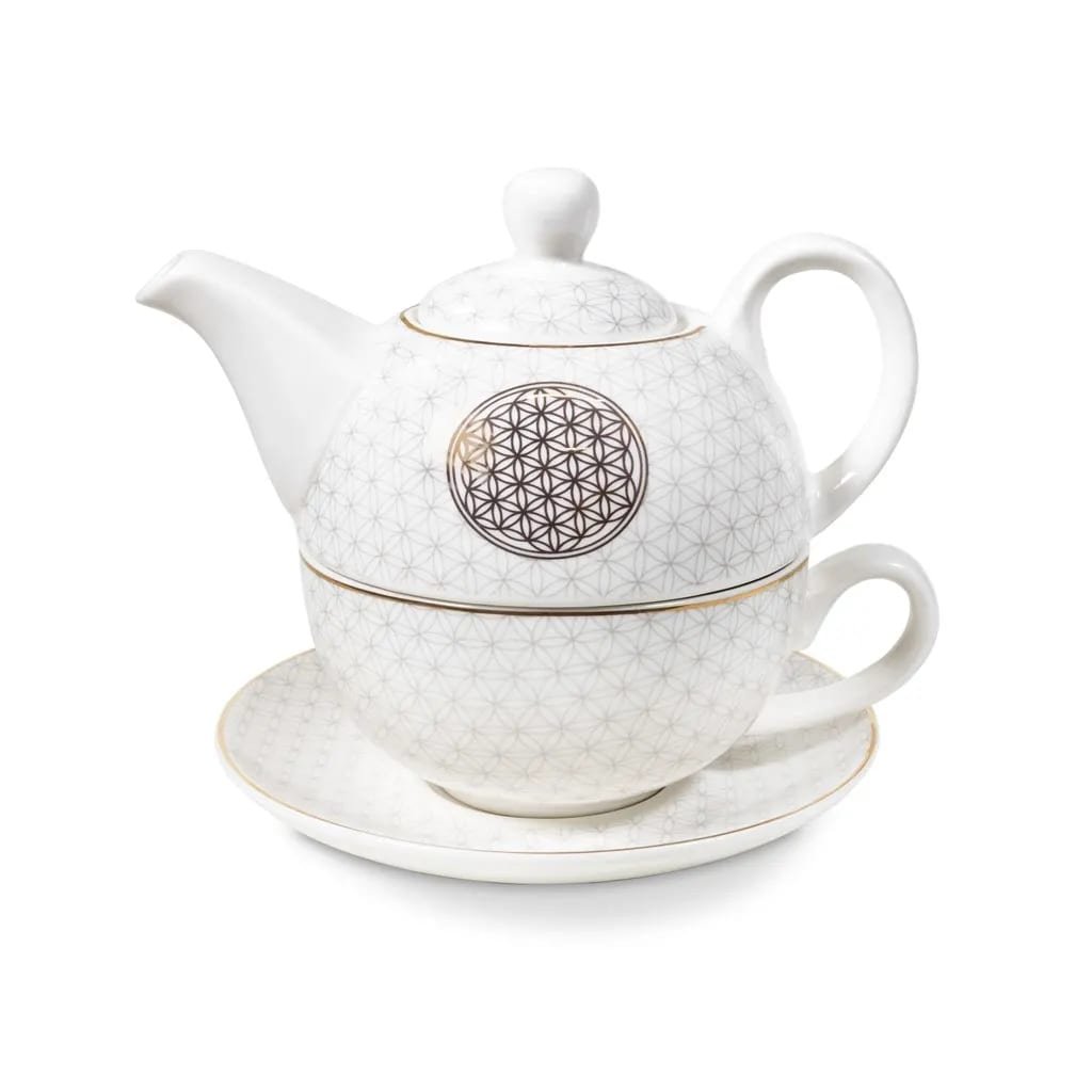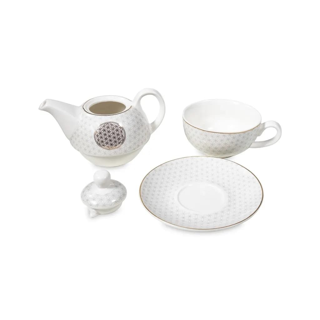 Ceainic Flexity din porțelan 2 în 1 Floarea Vieții cu ceașcă și farfurie 400 ml