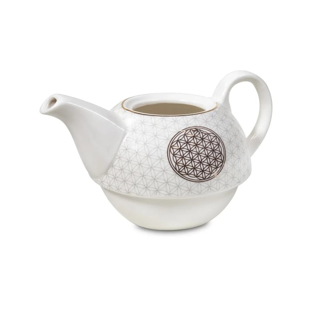 Bucură-te de momente prețioase de relaxare cu un ceainic de porțelan cu o ceașcă integrată, într-un design frumos și delicat, cu Floarea Vieții. Ceainicul este fabricat din porțelan Bone China de înaltă calitate.
