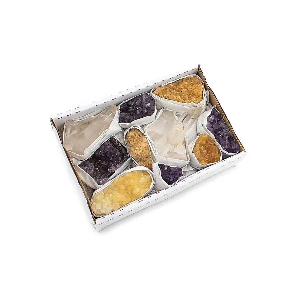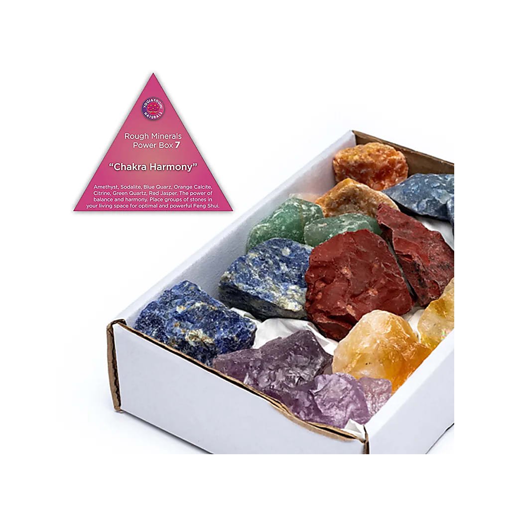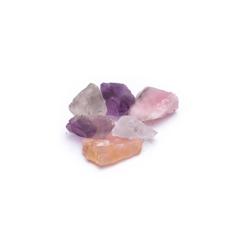 | Echilibrul chakrelor | Ametist brut, sodalit, cuarț albastru, calcit portocaliu, citrină (ametist ars), cuarț verde, jaspis roșu. |
