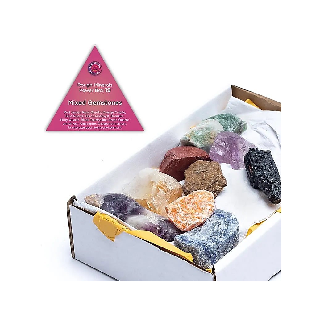 | Amestec de pietre prețioase | Jaspis roșu, cuarț roz, calcit portocaliu, cuarț albastru, cuarț verde, bronzit, cuarț lăptos, turmalină neagră, citrină (ametist ars), ametist, ametist chevron, amazonit.* |