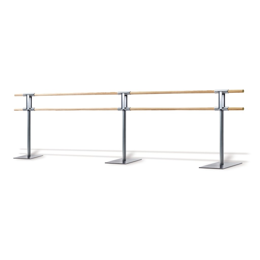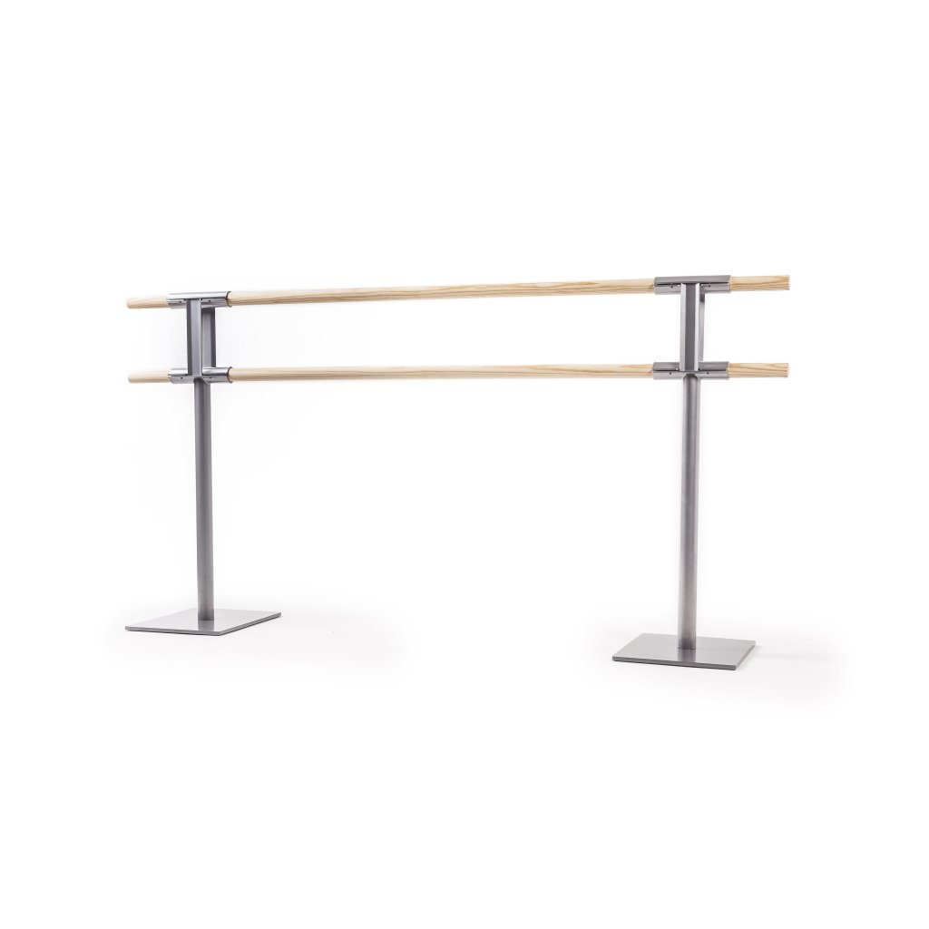 Bară dublă profesională cu design portabil pentru utilizare universală. Disponibil în versiune cu 2 sau 3 picioare, cu sau fără roți, pentru flexibilitate și stabilitate maximă.