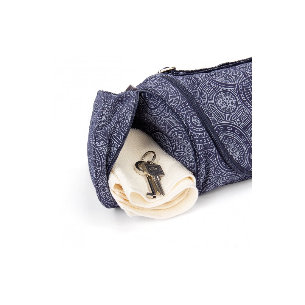 Fermoarul extins al genții permite introducerea și scoaterea foarte ușoară și rapidă a saltelei de yoga. Geanta include, de asemenea, un buzunar exterior pentru depozitarea obiectelor mai mici (chei, bani etc.) și o curea de umăr reglabilă. Desigur, orice saltea mai mică poate încăpea în această geantă, oferindu-vă și mai mult spațiu de depozitare pentru haine sau alte echipamente de yoga.