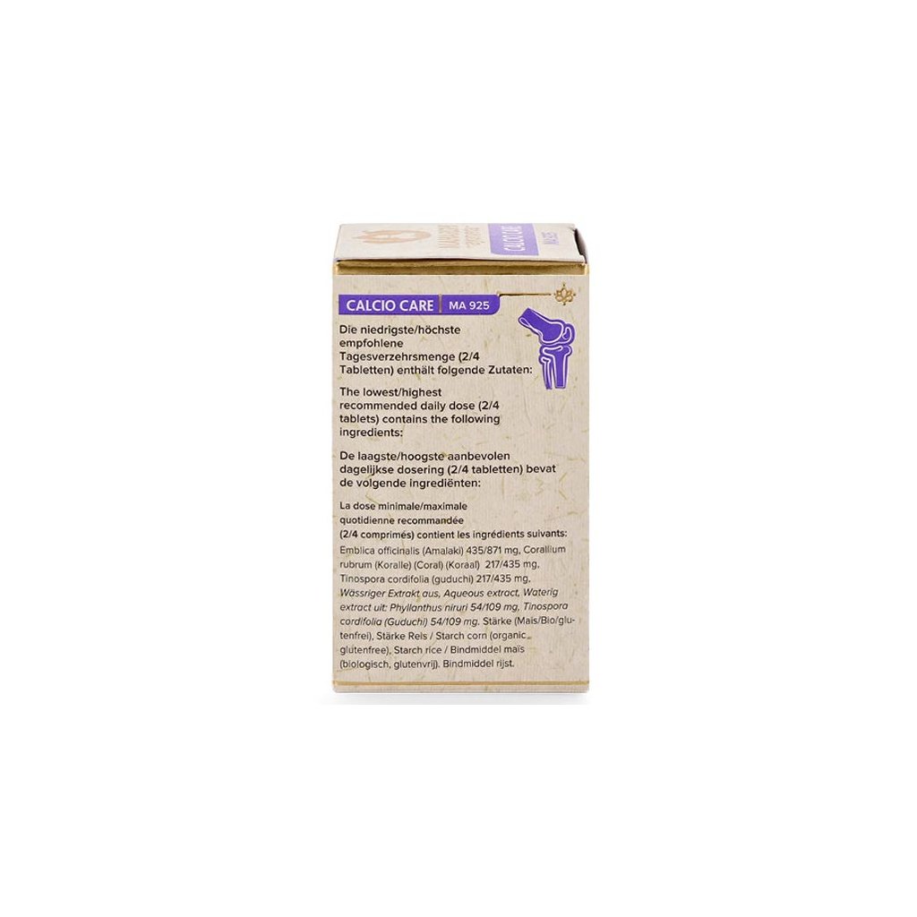 Maharishi Calcio Care Rasayana este un supliment nutritiv care conține o sursă naturală de calciu din corali marini selectați, suplimentat cu plante medicinale și extracte de fructe . Calciul este cunoscut pentru contribuția sa la funcționarea normală a mușchilor, a sistemului nervos, a coagulării sângelui și este implicat în procesul de diviziune și specializare celulară.