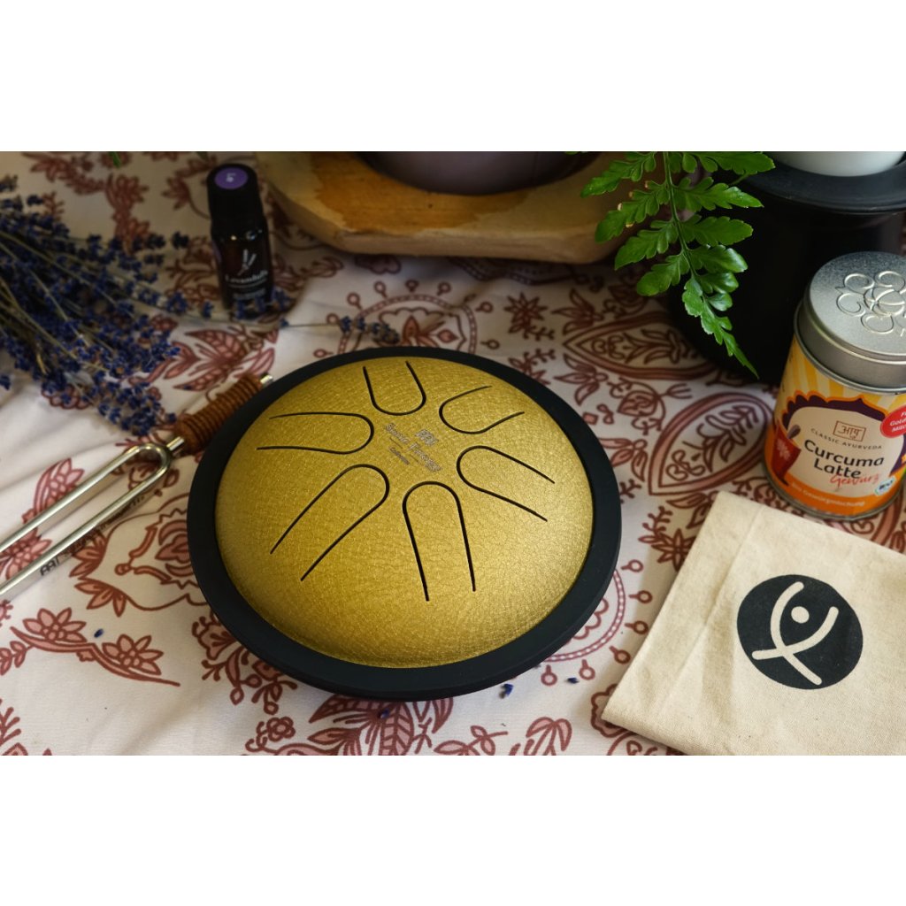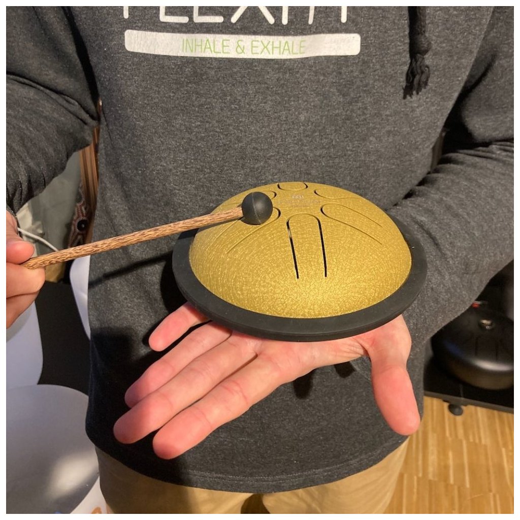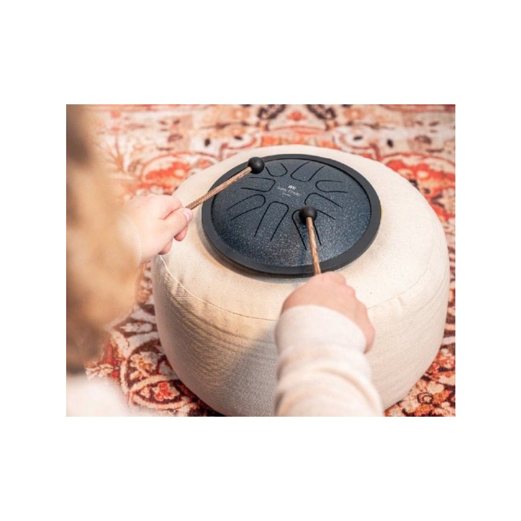 Meinl Sonic Energy Mini Steel Tongue Drum are tonuri preacordate, fiind accesibilă oricărui pasionat de muzică, cadru didactic sau terapeut prin sunet. Această versiune redusă a unei tobe standard din oțel are un format compact, ideal pentru experiențe muzicale variate. Poate fi folosită oriunde: în ședințe de yoga, terapie prin sunet, în clasă, la birou sau chiar acasă, pe masă. Cu un diametru de aproximativ 14 cm, poate fi cântată cu ușurință de către oricine, indiferent de vârstă sau experiență. Reprezintă, de asemenea, un adaos valoros în terapia prin sunet pentru copii.