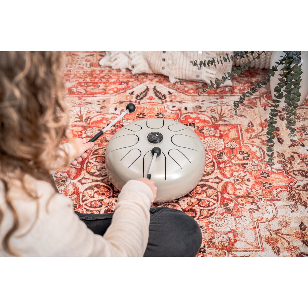 Toba Meinl Sonic Energy Steel Tongue Drum este ușor de utilizat atât pentru începători, cât și pentru muzicienii experimentați. Este fabricată din oțel german de calitate superioară. Emite un sunet cald, asemănător unui clopot, cu rezonanță prelungită.