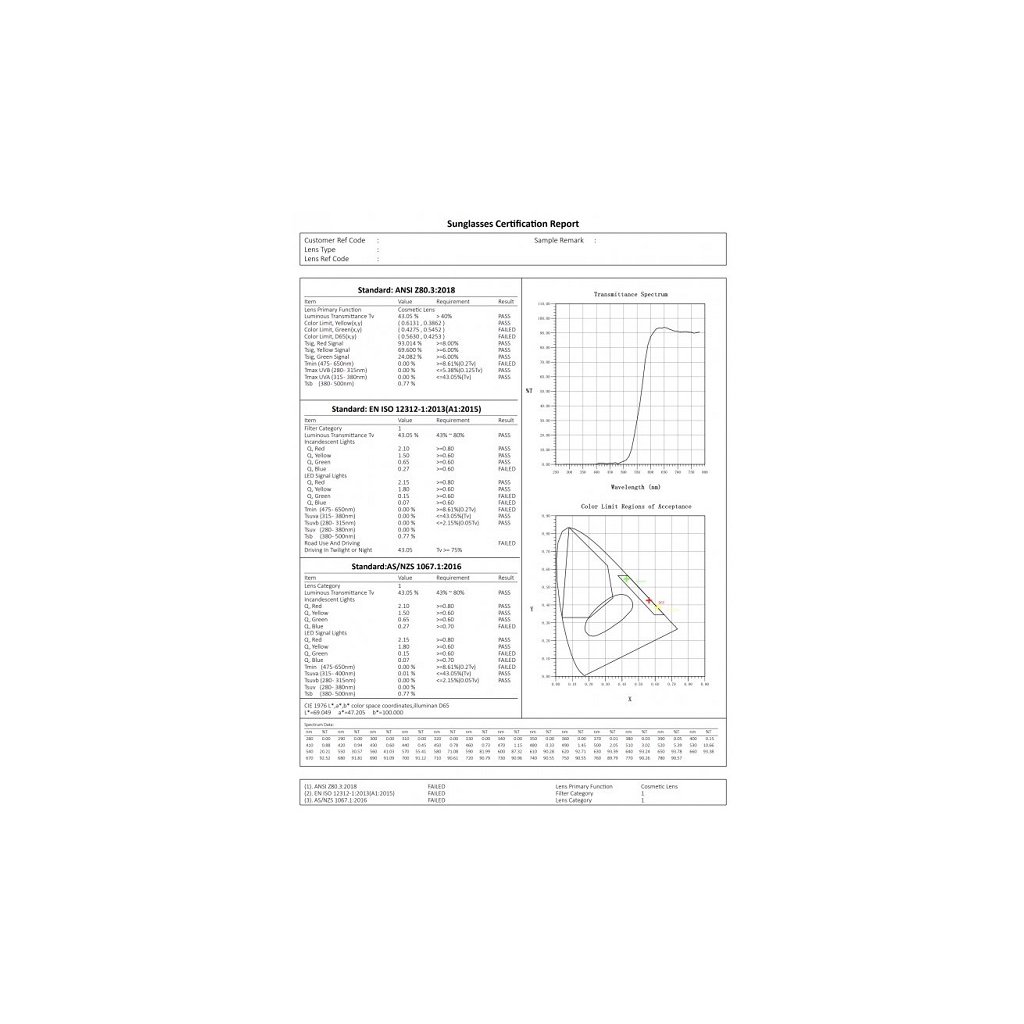 - Ochelarii sunt concepuți pentru piața europeană și au fost testați pentru filtrarea spectrelor de lumină albastră și verde.