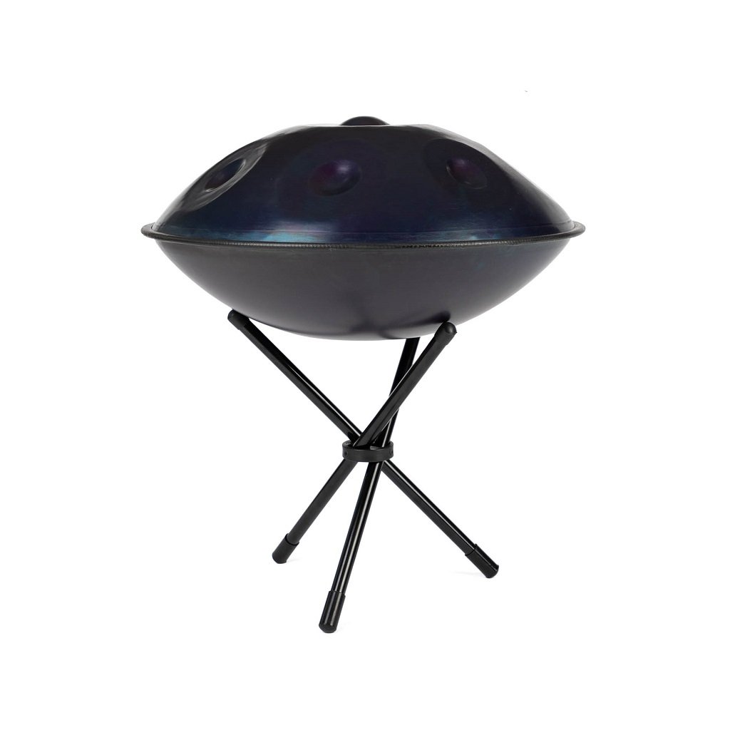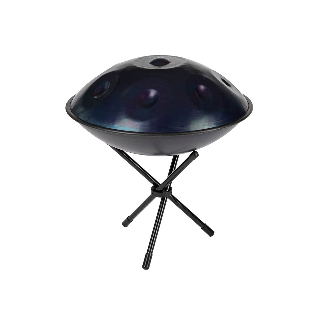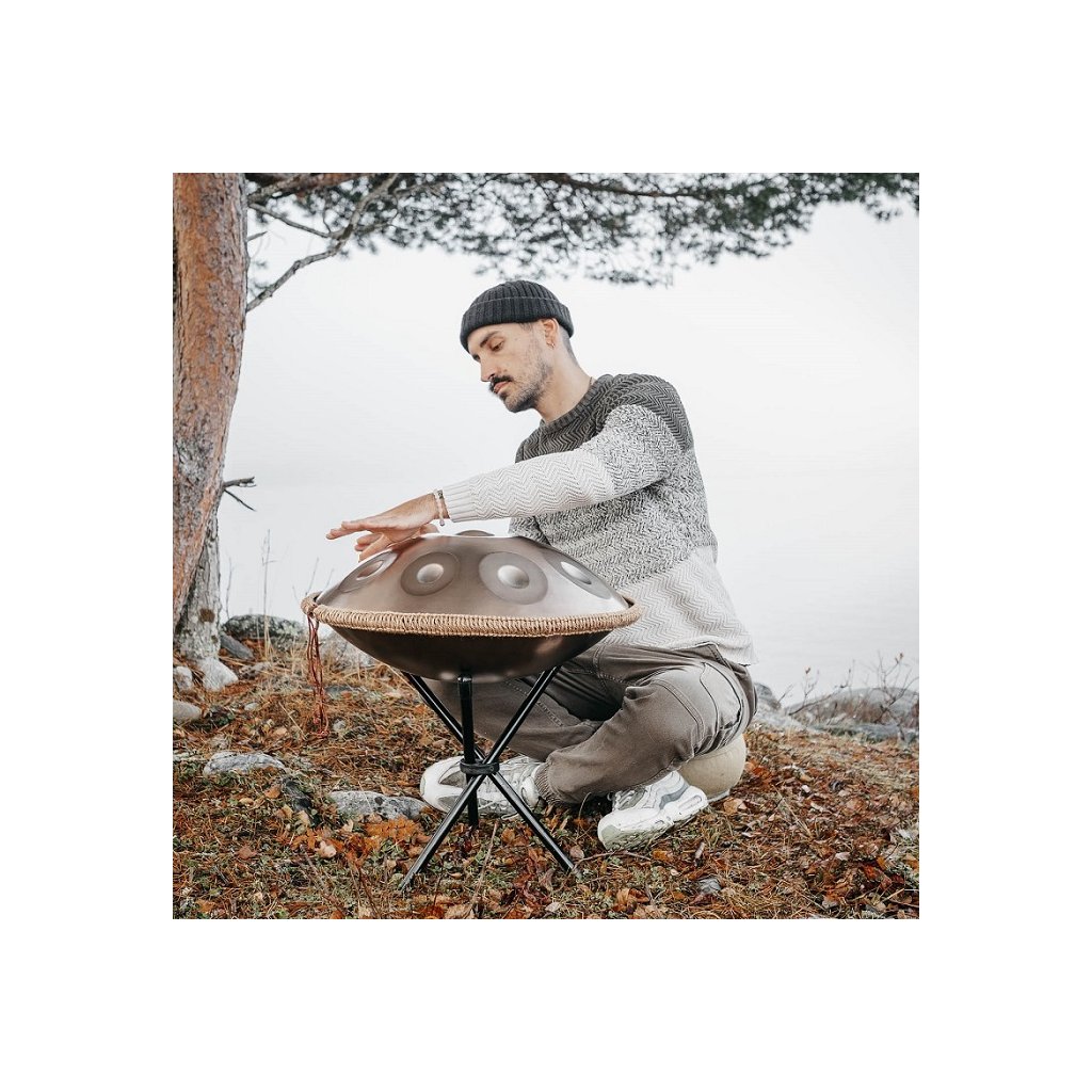 Este inclus și un stativ pe care poți sprijini handpan-ul pentru a cânta comod, așezat, la o înălțime confortabilă. Include și o gamă majoră paralelă, ceea ce extinde posibilitățile muzicale și face învățarea acestui instrument unic și mai plăcută.