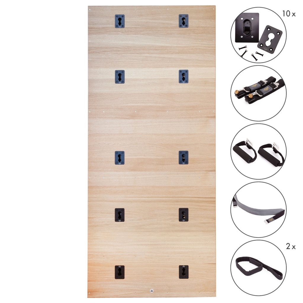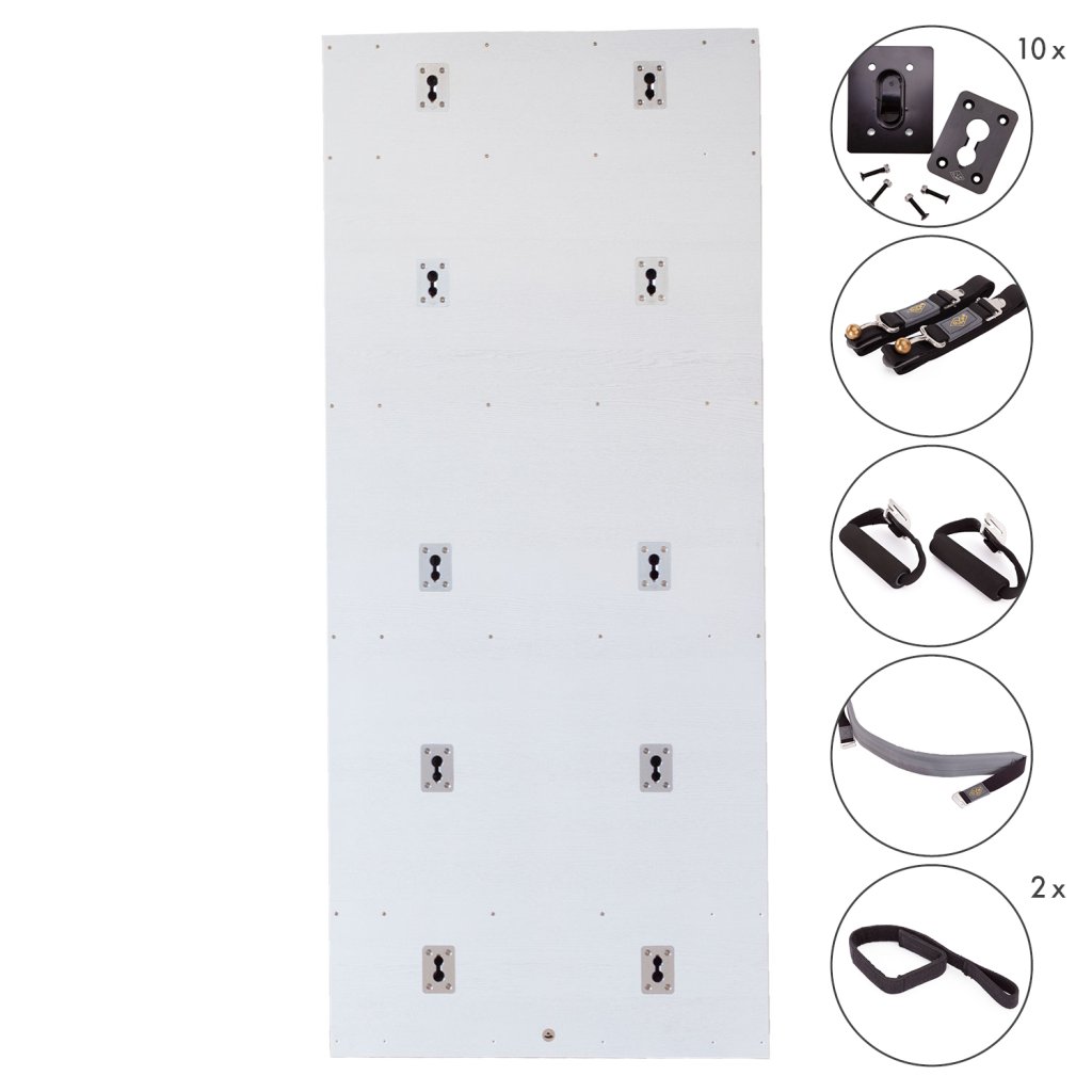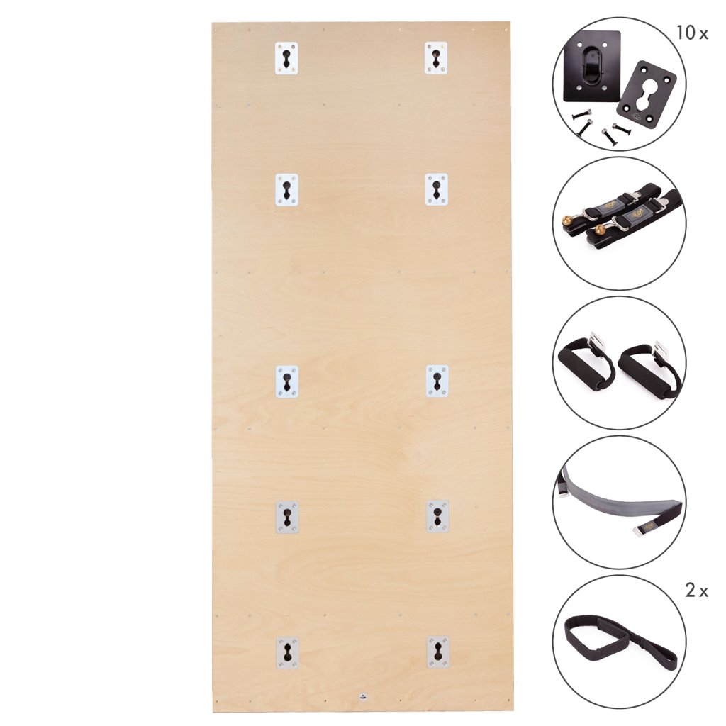 Frânghiile simple au fost înlocuite cu curele capitonate, reglabile. De asemenea, sunt disponibile accesorii suplimentare precum curele pelviene, mânere sau bare. Configurația cu 10 plăci montate pe perete la cinci înălțimi diferite oferă posibilități extinse de exerciții.