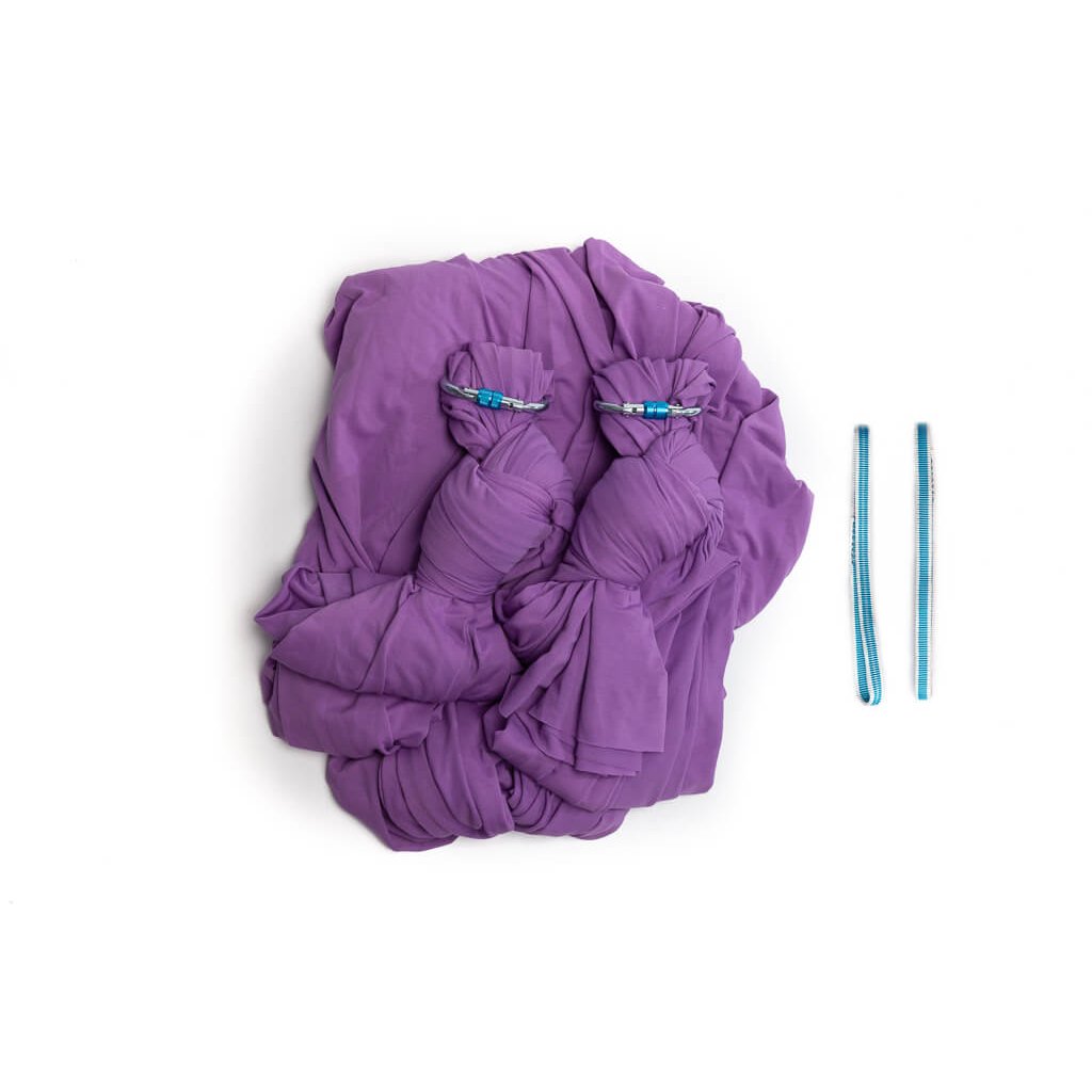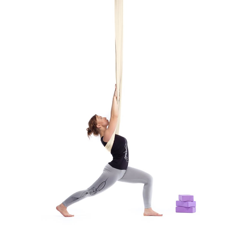SFAT: Dacă ai nevoie să reglezi rapid și sigur înălțimea hamacului, mai ales într-un studio, îți recomandăm achiziționarea unui sistem Daisy Chain. Acesta este prevăzut cu mai multe bucle individuale care permit ajustarea ușoară a înălțimii fără a desfășura nodurile. Găsești toate accesoriile necesare în secțiunea Accesorii pentru Yoga Aeriană și Fly Yoga.