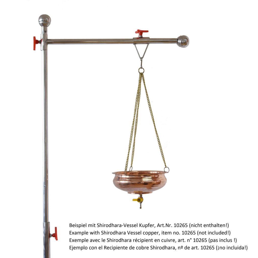 Suportul robust din oțel pentru Shirodhara este complet demontabil și reglabil atât pe înălțime, cât și pe lățime.
