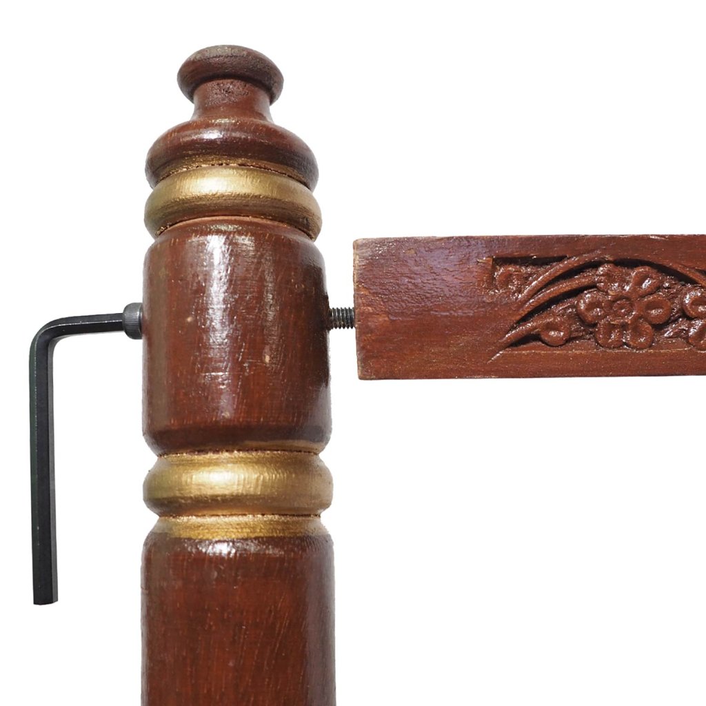 Suportul Shirodhara Ayurveda Classic este o piesă unicat, realizată manual din lemn masiv de cedru, finisată cu glazură în tonuri închise. Datorită măiestriei cu care a fost creat, cu detalii lucrate cu migală, suportul are un aspect ce amintește de mobilierul colonial rustic din Orient.