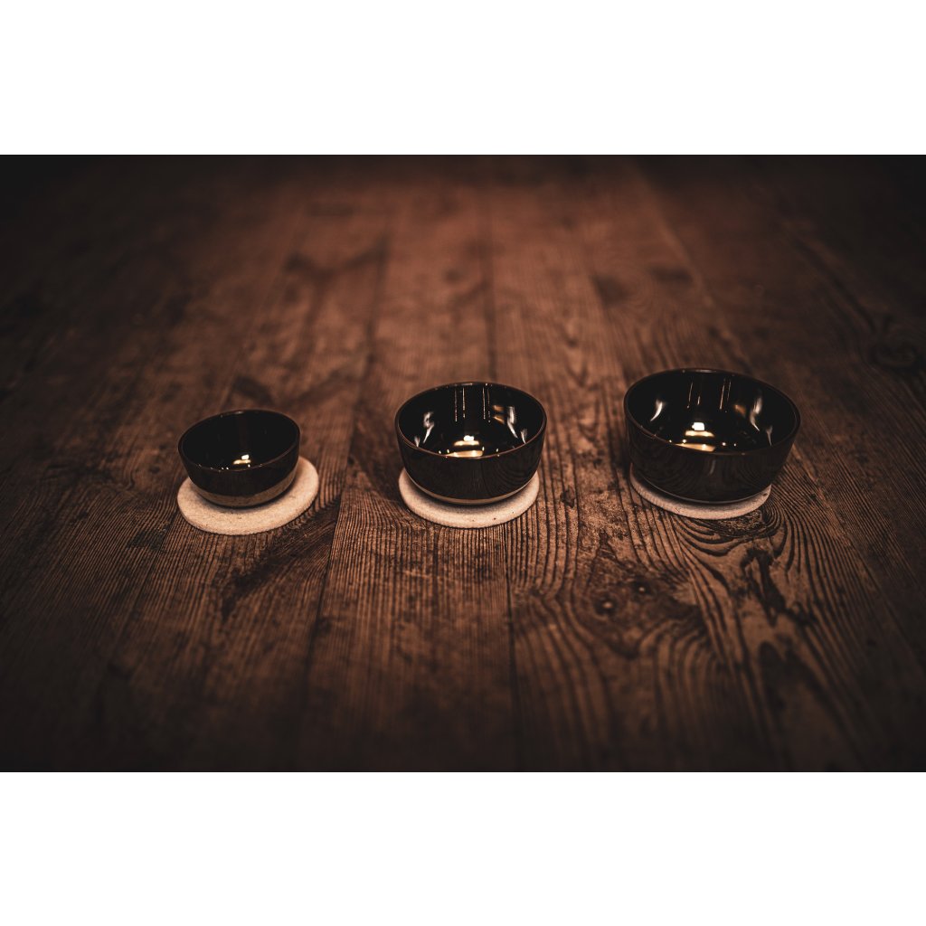 - Conținutul pachetului: 3 boluri Zen (7–10 cm), 3 tampoane din pâslă, 3 săculeți de depozitare, 1 ciocan cu cap din cauciuc pentru lovire