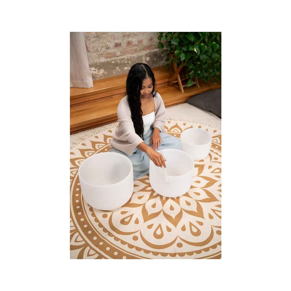Pentru a sprijini eliberarea blocajelor și a emoțiilor stagnante, este recomandată activarea chakrelor prin vibrațiile unui bol rezonant. Așază bolul corespunzător pe zona chakrei vizate, lovește-l ușor și permite vibrațiilor să pătrundă în corp și în spațiul tău interior.