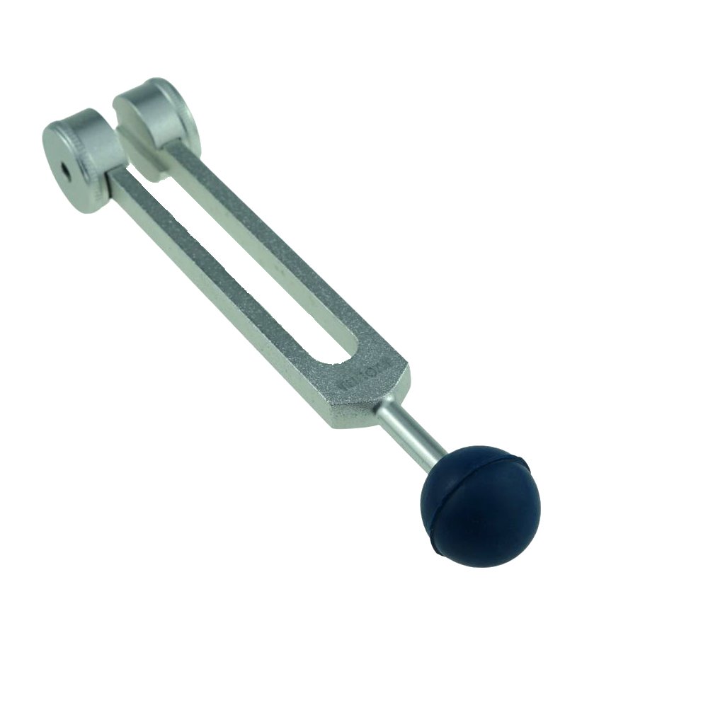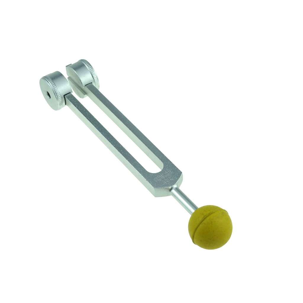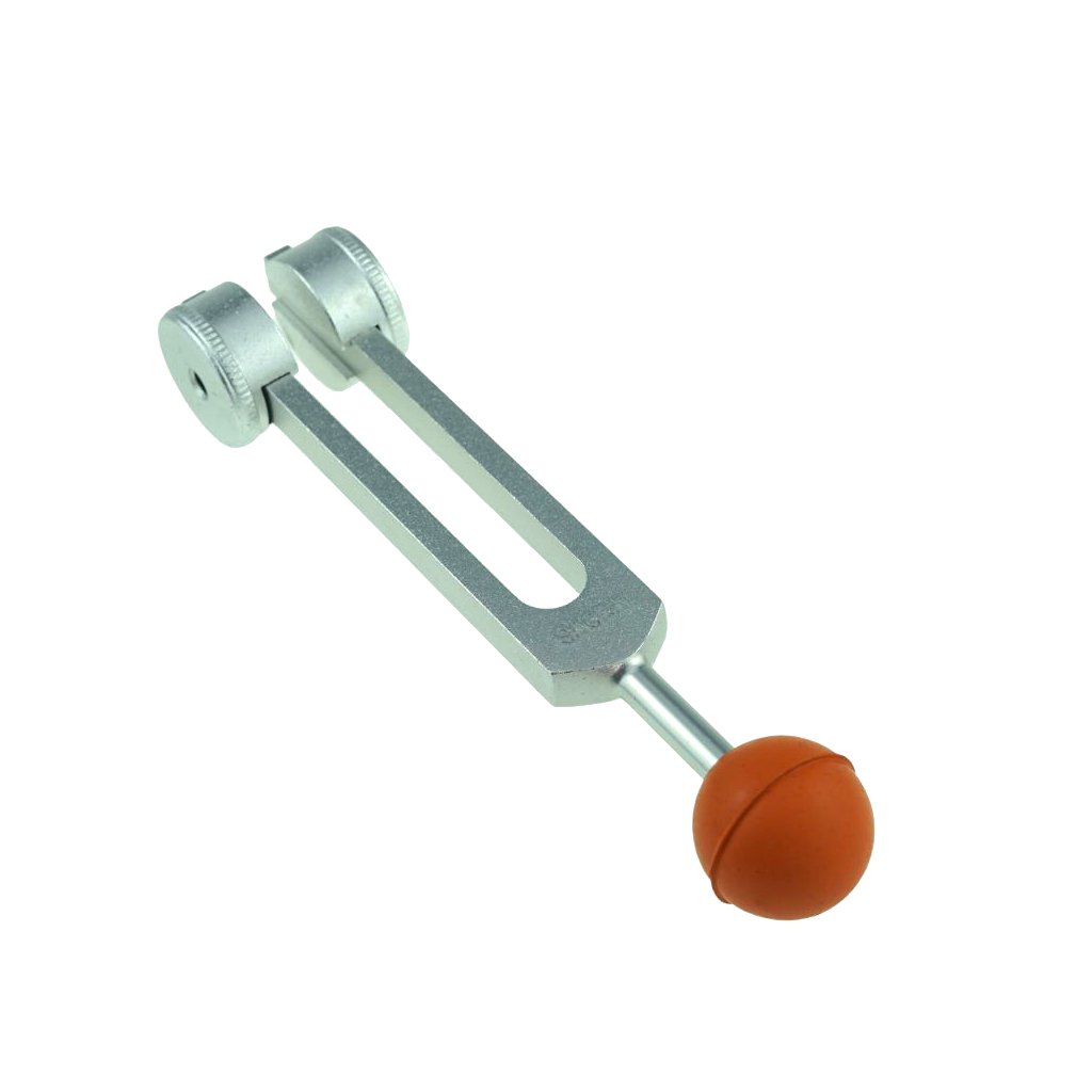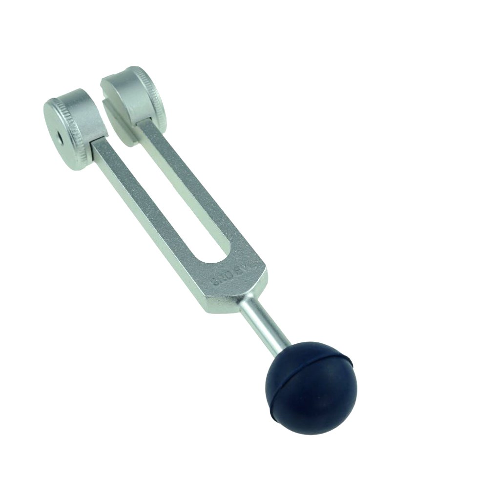 - Poți percepe vibrația mai intens și în profunzime atunci când mânerul diapazonului este aplicat direct pe corp, datorită greutăților aflate la capetele lui.