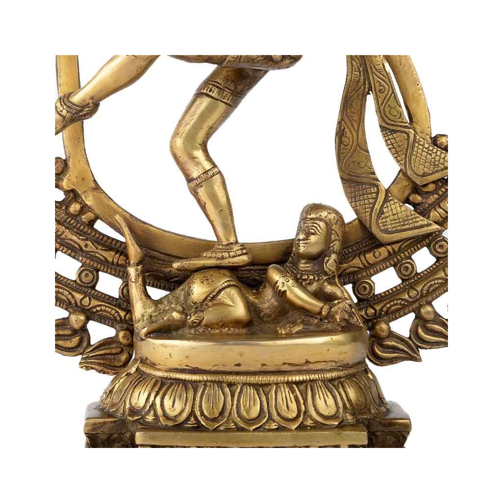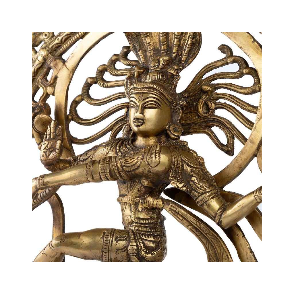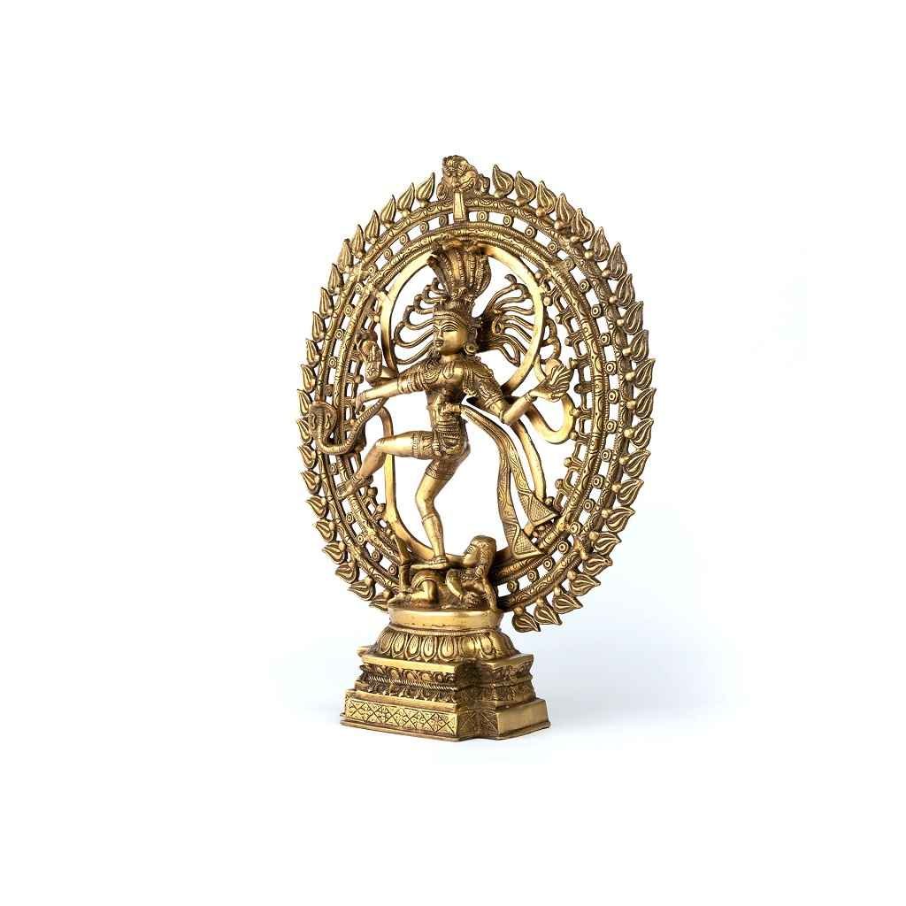 Zeul dansator Shiva în rolul lui Nataraja (Domnul Dansului) – o piesă decorativă ideală pentru studioul tău de yoga sau pentru casă. Realizată din alamă de înaltă calitate, lucrată cu migală. Fiecare statuie este făcută manual, din alamă cu finisaj auriu.