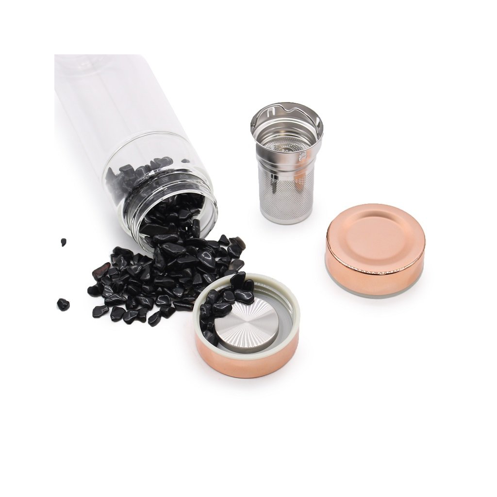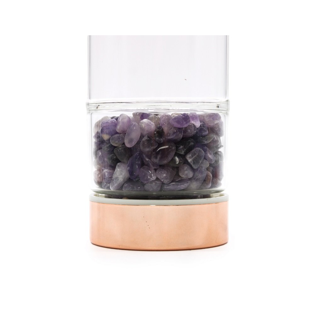 Sticlă de ceai Flexity cu pietre prețioase, din sticlă cristalină, aur roz, ametist, 500 ml