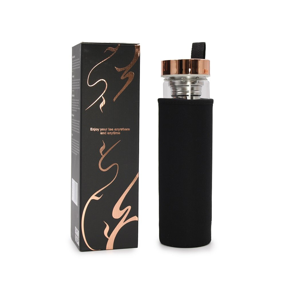 - Conținutul pachetului: sticlă, fără BPA – cu husă practică din neopren și sită detașabilă