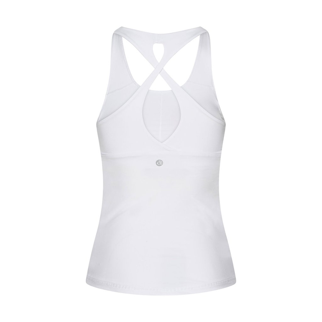 Maiou Bodhi Niyama Essentials Crossed Back pentru femei, cu cupe integrate – îmbină funcționalitatea unui sutien sport cu stilul unui maiou. Datorită materialului respirabil și cu uscare rapidă, este alegerea ideală pentru yoga sau alte activități fizice. Cupele detașabile oferă susținerea necesară în timpul oricărui tip de mișcare. Croiala lungă asigură o acoperire completă și confortabilă. În plus, detaliul cu bretele încrucișate la spate adaugă o notă elegantă și atemporală. Țesătura moale, dar fermă, asigură susținerea optimă, lăsând în același timp libertate totală de mișcare. Bretelele subțiri, încrucișate, pun accentul pe spate într-un mod subtil și feminin.