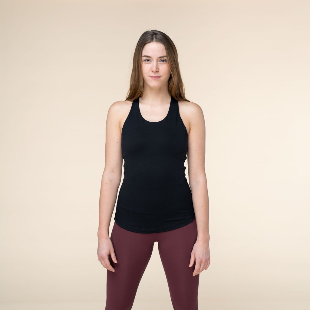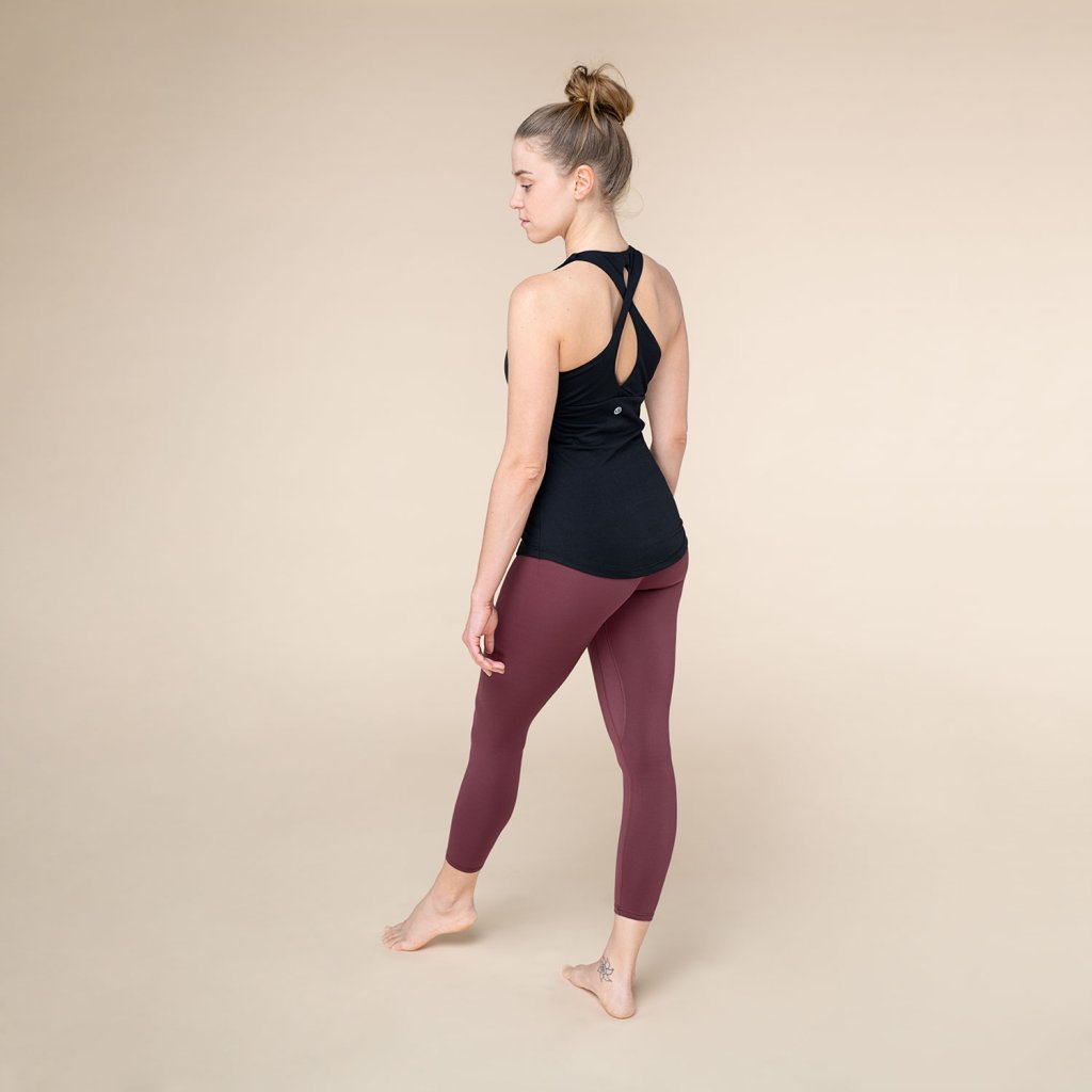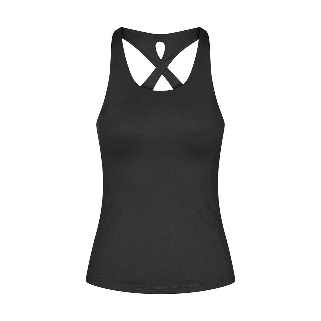 Top de damă Bodhi Niyama Essentials Crossed Back Tank Top, negru, cu cupe integrate