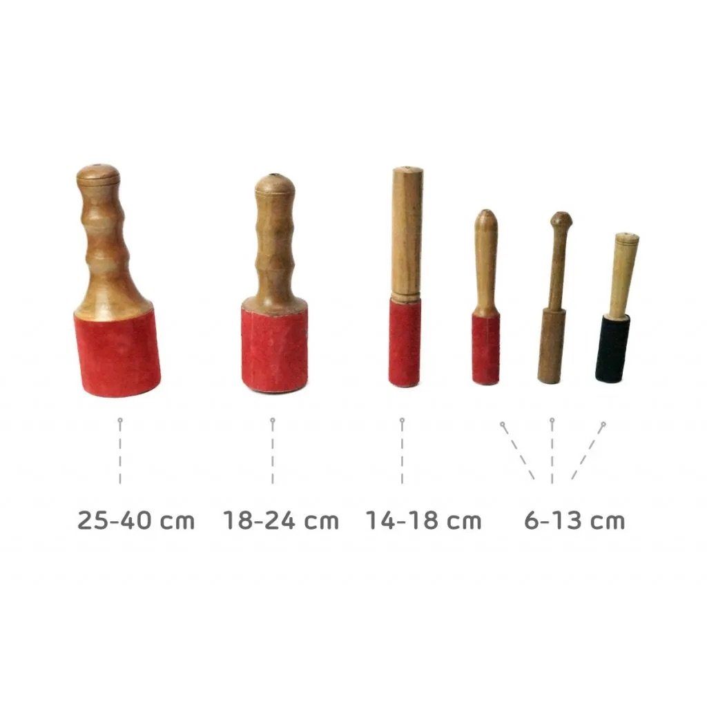 *Pentru bolurile mai mici recomandăm să le faci să vibreze prin frecarea marginii, folosind partea de lemn a ciocănelului. Bolurile cu un diametru de până la 12 cm pot fi mai greu de pus în vibrație datorită dimensiunilor reduse.
